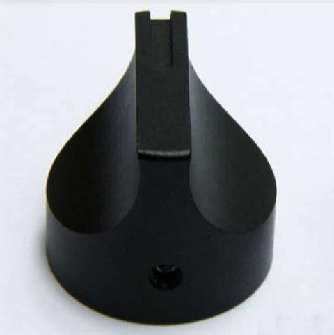 This anodized aluminum knob is normally used in volume control systems. The fingertip grasp makes it easy to rotate with fingers. Each of them is drilled with a hole where a D-shape shaft can fit.
