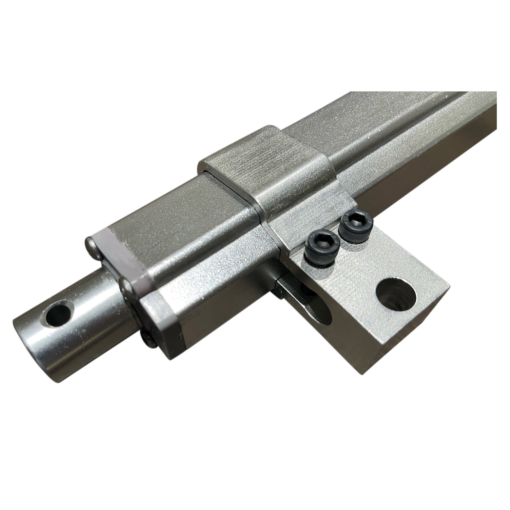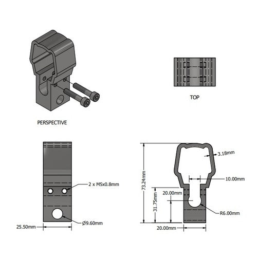 Lightweight, compact, and versatile; The MB6-P bracket allows the P-Series Actuator line to be mounted from the body, offering flexibility in applications as well as reducing the overall length by eliminating the requirement for a base-end mounting bracket. This mounting bracket slides over the body of the actuator and is tightened by two bolts. The whole assembly is then easily installed into the application. Yacht owners, engineers, car enthusiasts, as well as armored vehicle specialists are just a few of the happy clients that have used the MB6-P brackets to tackle tough design obstacles. Sturdy aluminum construction keeps your project stable and reliable. Hole diameter for mounting/fixing is 9.5mm (3/8 in.).
